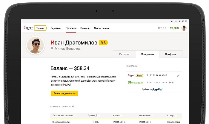 ВНИМАНИЕ! Важно, что бы имя и фамилия, указанные в профиле Толоки совпадали с паспортными данными, в противном случае вывести заработанные средства из системы будет невозможно.