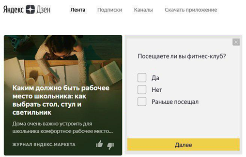 Для быстрых опросов мы используем РСЯ (прим.автора — рекламная сеть Яндекса). Размещаем короткие, быстрые опросы на том месте, где пользователь обычно видит рекламу.